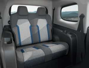 - Thiết kế tối giản, phù hợp cho dịch vụ vận tải. Ghế nỉ màu xám với điểm nhấn vàng hoặc xanh.